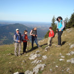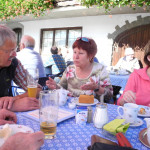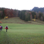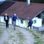 Bei einem Wetter, das dem „Goldenen Oktober“ entspricht, gehen um 9 Uhr am Parkplatz Winklstüberl daher die, die oiwei gehen, nämlich Manfred H. der heute die Aufgabe des Tourenbegleiters übernimmt mit seiner Frau Renate, Brigitte A., Gabi L., Hannelore Z. und Holger B. Der Weg führt an der Schwaiger Alm vorbei zur Bucher Alm. Weiter geht’s, bis die Truppe den Bockstein auf 1.575m erreicht. Nach kurzer Pause steigt die Mannschaft hinüber zum Gipfel des Breitensteins auf 1.622m. Hier gönnt man sich bei traumhafter Sicht, es herrscht ja schließlich Föhn, eine längere Brotzeitpause. Angesichts dieses Sonnentages fällt der Abstieg über die Hubertushütte zur Kesselalm leicht. Den Parkplatz erreicht die Truppe, indem sie zunächst Richtung Birkenstein marschiert und dann die Schwaigeralm passiert. Am Winklstüberl wartet bereits Götz, Gabi’s Ehemann, der mit dem MTB zu dieser Konditoreioase gestrampelt ist. Gemeinsam setzen sich alle, wie es sich gehört, auf die Terrasse des Cafes und genießen die Sonne bei Kaffee und Kuchen.