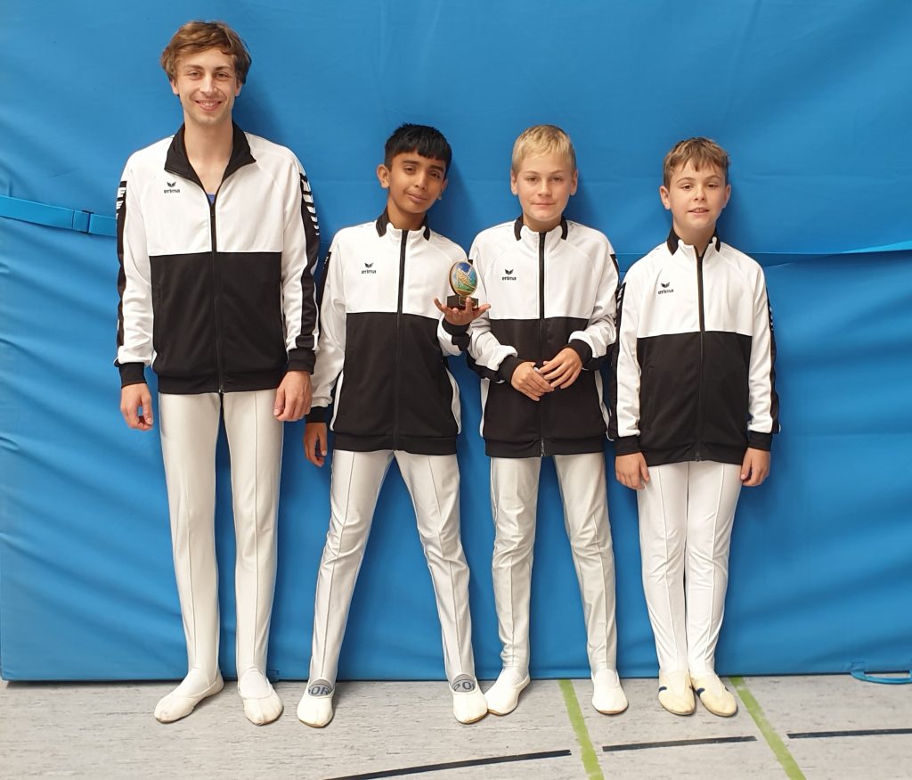 Während wegen zu geringer männlicher Teilnahme die 14- bis 27-Jährigen in einer einzigen Wettkampfgruppe „Junioren“ zusammengelegt waren, zeigte die Gruppe der Zehn- bis Elfjährigen 40 Turnerinnen auf. Entsprechend groß war für unser Juniorenteam die Leistungsspannweite und so schrammte unser Philipp Höfling als ältester Turner nur knapp am 3. Platz vorbei. Paul Handwerker landete auf Platz 6. Mehr Glück hatte Goraksh Nemade und konnte in seiner Altersgruppe den 3. Platz erringen. Den 7. Platz belegte Quirin Hindermayr. Eine absolut positive Leistungsbilanz bei nur vier Teilnehmern aus Ottobrunn.